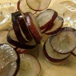 Thinly slice black grapes and set aside in small bowl. May be covered and refrigerated until ready to use.